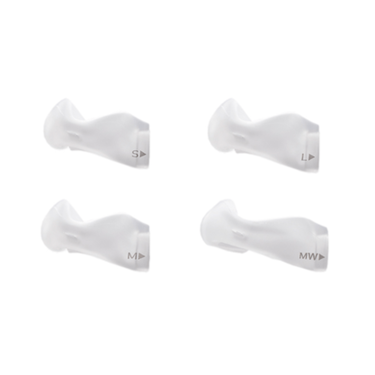 A máscara DreamWear possui quatro tamanhos de almofadas nasais (S, M, L, MW),